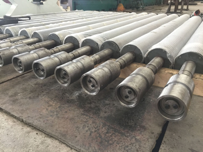真空壓榨輥的結(jié)構(gòu)和真空伏輥類似,但是有幾點(diǎn)不同,真空壓榨輥的真空室寬度要窄一點(diǎn)些,通常為100~;真空壓榨輥輥面小孔的直徑較小,為4.5mm左右。輥面開孔率較低,一般為15%~25%。真空壓榨輥輥筒表面需要包膠,膠層厚度20~。真空輥的殼體